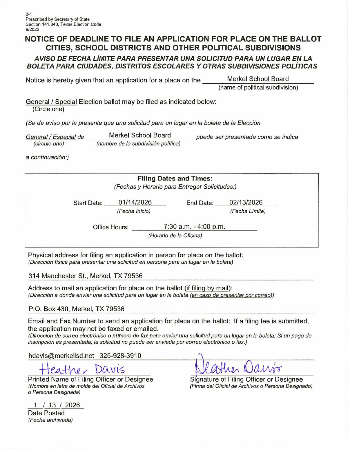 The Merkel ISD Board of Trustees would like your input